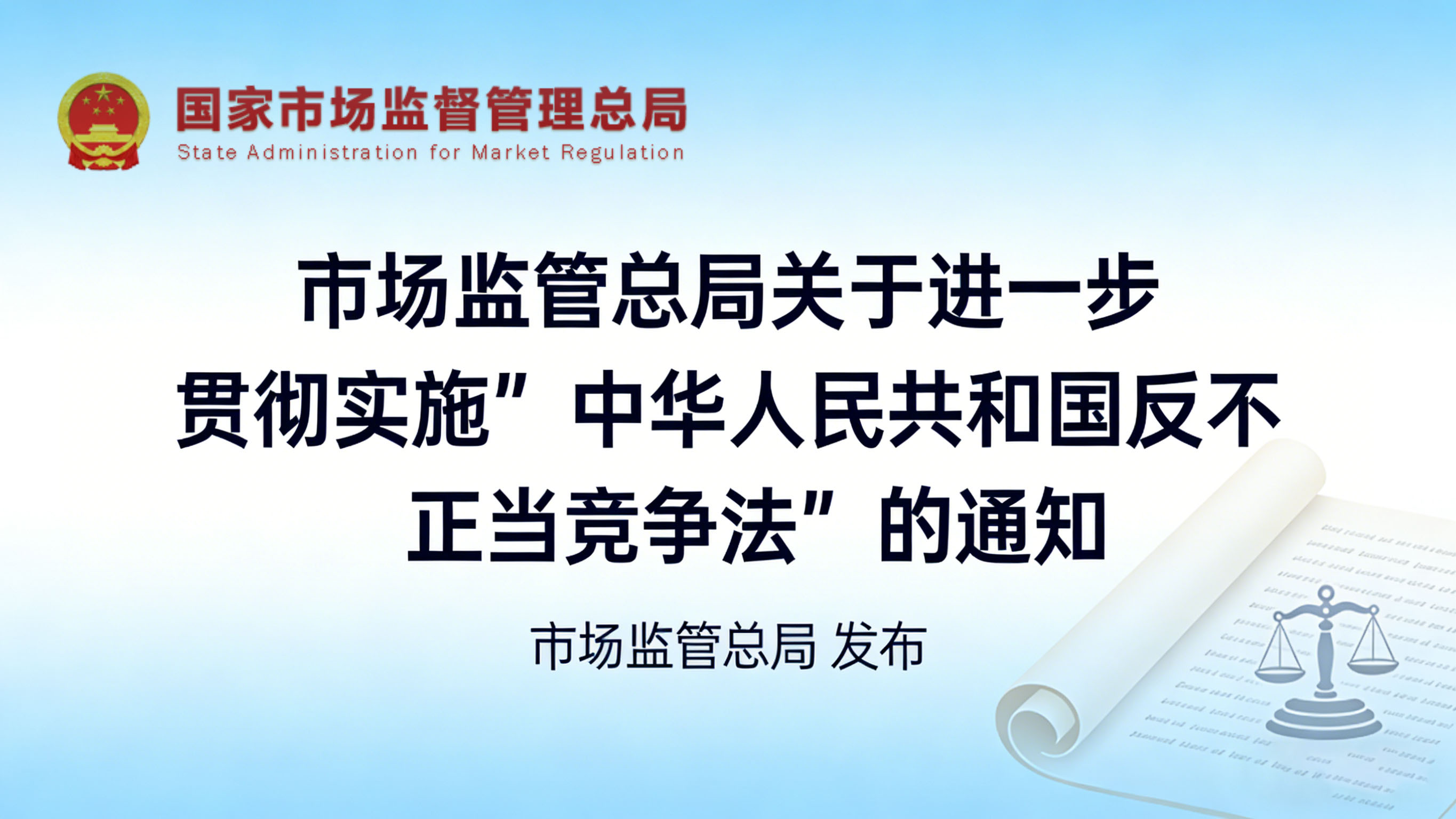 市场监管总局关于进一步贯彻实施 《中华人民共和国反不正当竞争法》的通知(一)